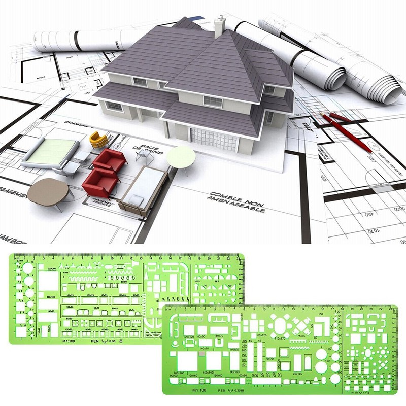 Geometric template for house planning, geometry drawing for mathematics, network engineering, art, architecture, fraction measurement, useful accessories for drawing templates in school and office.