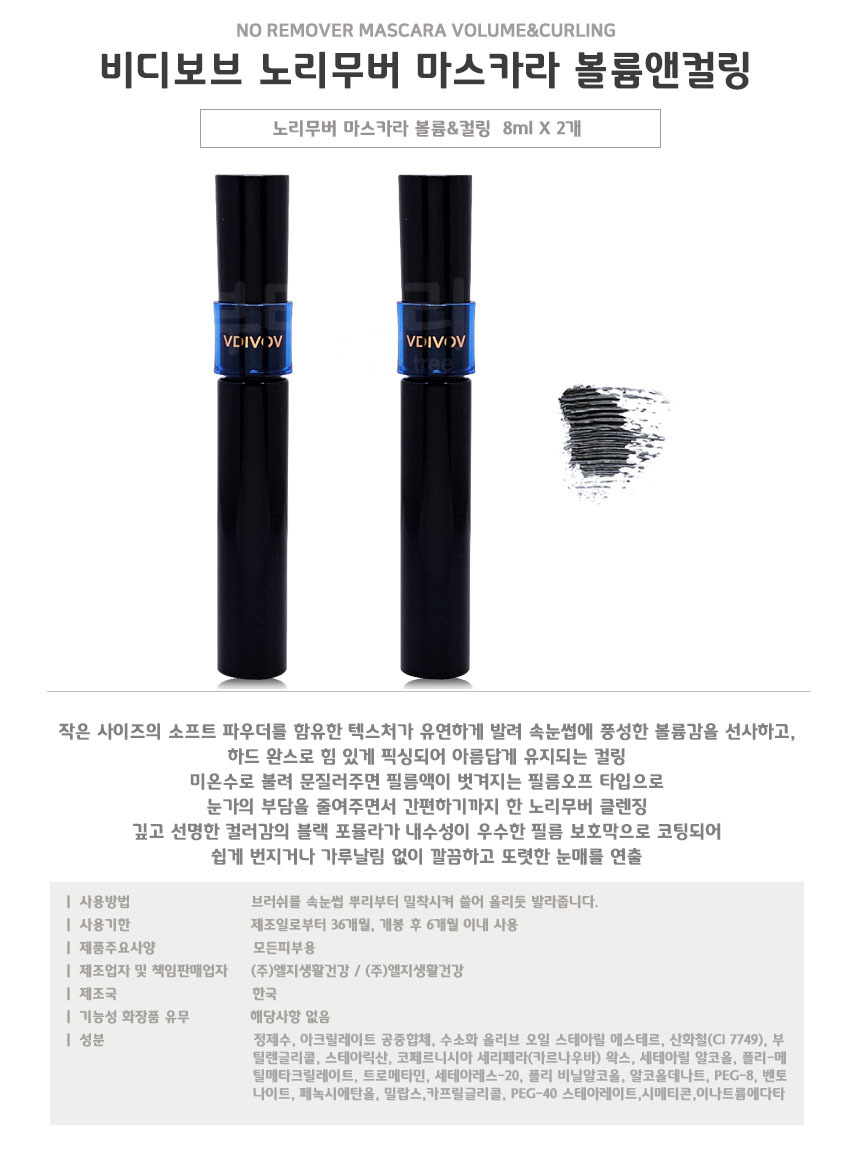 비디보브 노리무버 마스카라 볼륨앤컬링 8ml X 2개