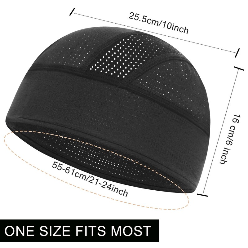 Lightweight headcaps beanie:One size fits all skull cap is perfect for walking,hiking,jogging,running,workout,cross training,cycling,gym,football,tennis,dancing,basketball,or any other activity.Soft Helmet Liner:Our helmet liner is the perfect choice for anyone looking for a soft,comfortable and skin-friendly under-helmet skullcap.It's great for wearing under different types of helmets, such as safety helmets,cycle helmets, motorcycle helmets and so onIce hat cooling skull cap:Hat sweat protector