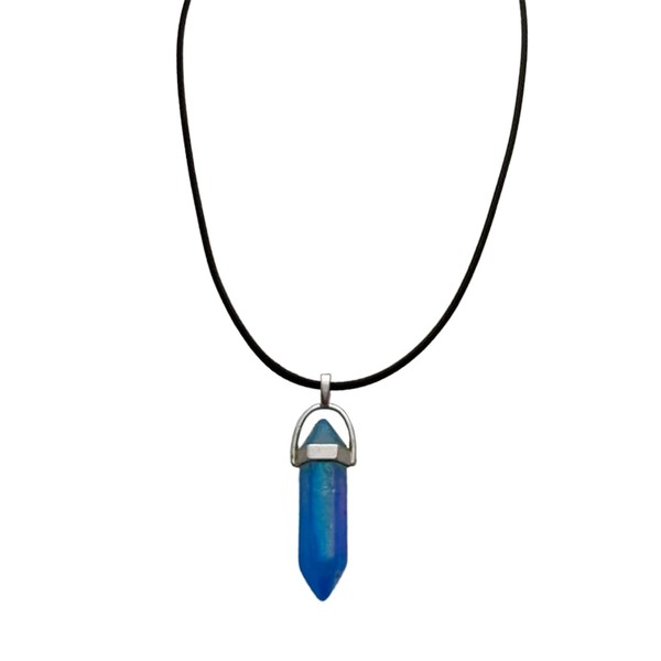 VIE Double Point Pencil Pendant, Black String, Aqua Aura Quartz