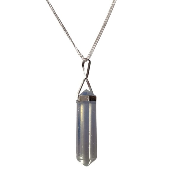 VIE Double Point Pencil Pendant, Silver Chain (Opalite)