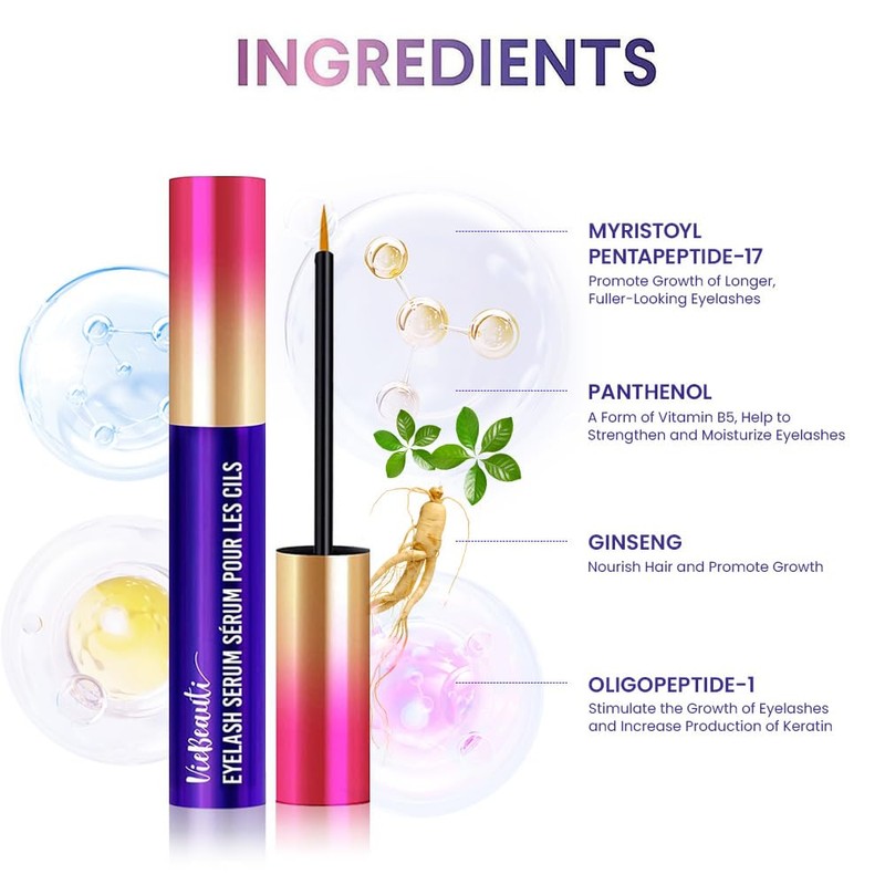 - ACCENTUATE YOUR EYES with longer, bold lashes and eyebrows fortified by VieBeauti Lash Serum and Brow Enhancer. This potent blend of amino acids boosts keratin production and supplies nutrients crucial to growth and longevity.
