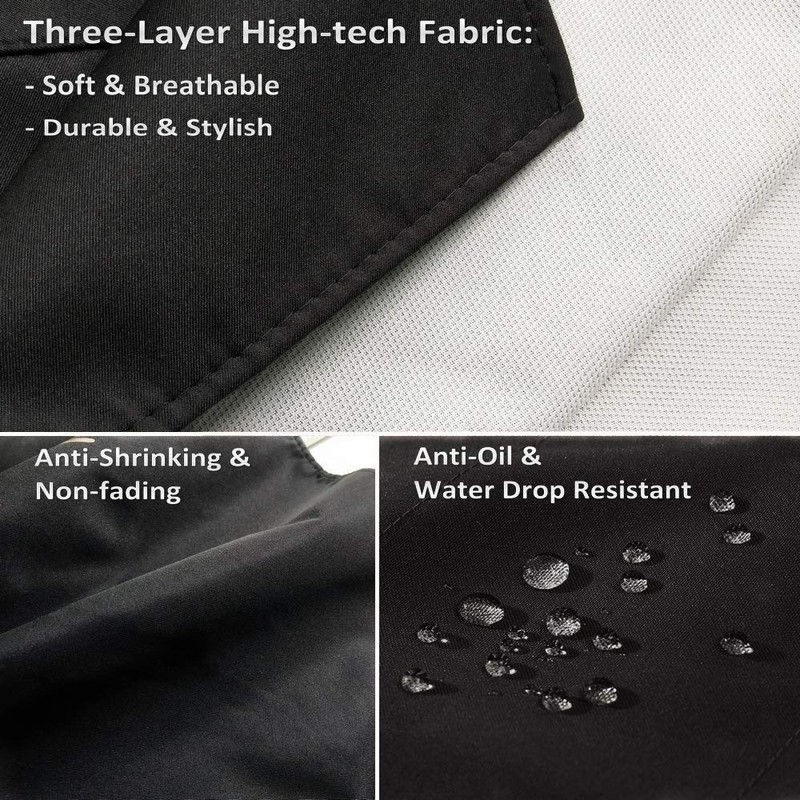 - Excellent waterproof performance: This black apron is made of three-layer fabric. The outer layer is made of velvety peach skin. It is soft and comfortable to use. The Aspet is fashionable. The interlayer is impermeable PTU, the water resistance is better; the inner layer is made of a soft material for the skin, which makes wearing more comfortable.