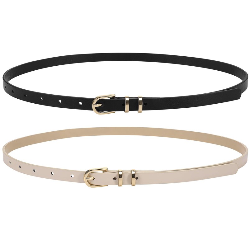 - Package Includes: You will receive 2 pack skinny leather belt in different colors, including black, beige.The classic and stylish leather belt is an essential in your wardrobe