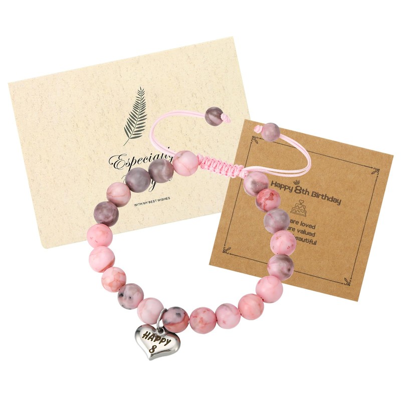 - Natural Stone Bracelet for Girls - 8th birthday gifts bracelets for girls are handwoven with strong rope and natural stone beads,with inspirational card, can be as gifts for 8 year old girls,girls birthday presents.Amazing Christmas gifts, birthday gifts, back to school gifts, graduation gifts,Valentine's day gifts,Thanksgiving day gifts.When receiving the bracelet , they will feel the love of you