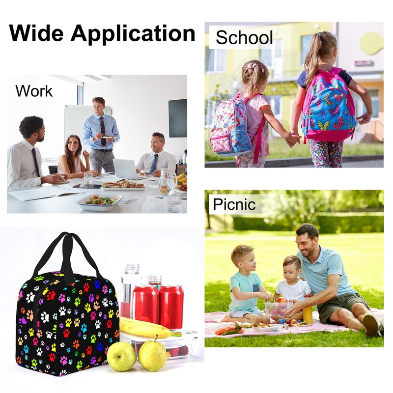 VIELEGELD Dog Lunch Bag, Reusable Insulated Lunch Box Large Capacity Meal Tote for Kids Women Men Cooler Bag, Durability of Zippered Lunch Tote for Work School Picnic Travel, Dog Paws…
