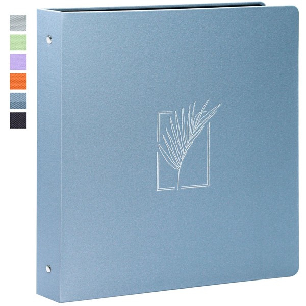 Vienrose 3 Ring Binder, 1 inch Round Rings Durable Linen Binder fit 8.5 x 11in Paper, with Leaf Printed for School, Office and Home, Blue