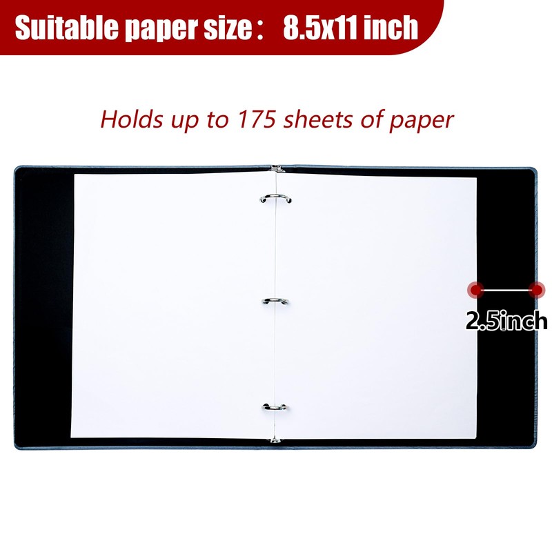 - Perfect Size and Capacity: Binder cover size is 10.5" x 12", suitable for 8.5x11 inch paper. The interior has 3 rings spaced 4.25" apart and can hold up to 175 sheets of paper