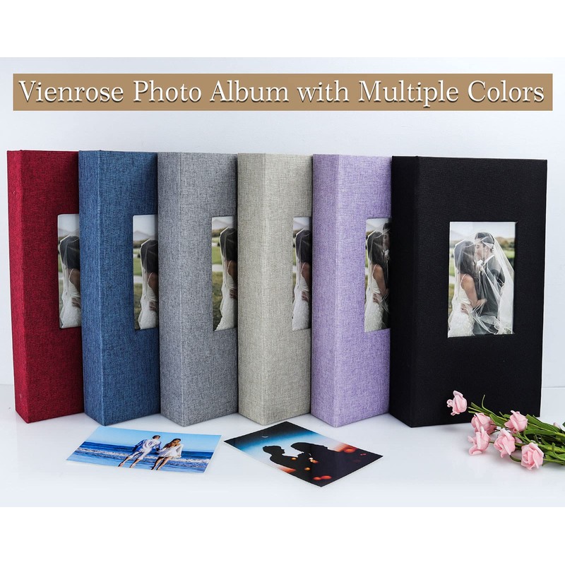 Vienrose 6x4 Photo Albums Slip in for 300 Photos Linen Cover Black Pages Photo Books Large Capacity Picture Albums for Valentine Wedding Christmas Birthday