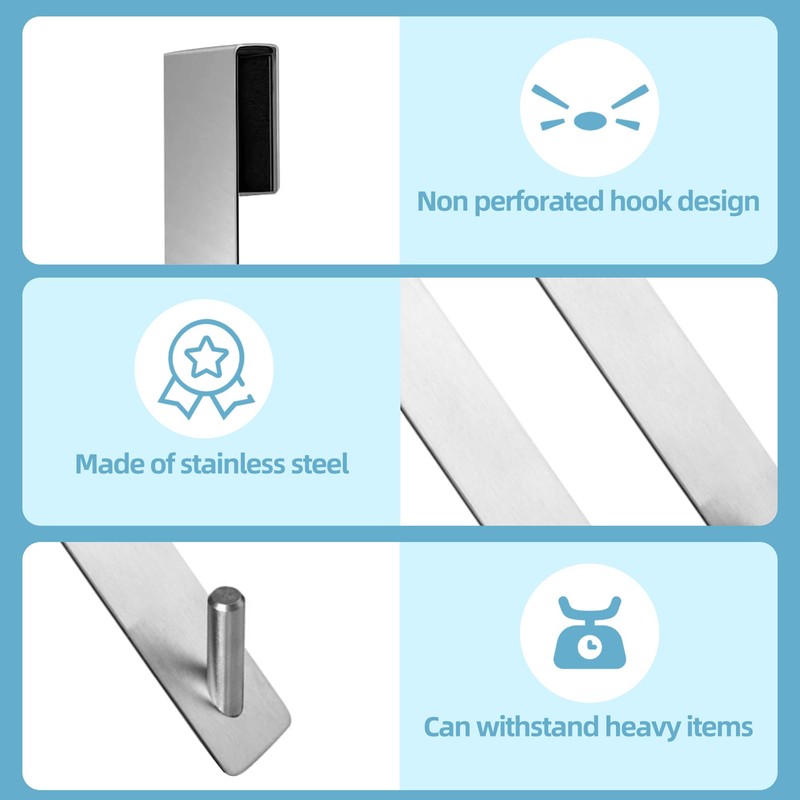 - [Material]-Over door towel rail are made of stainless steel with smooth and rounded edges, hanging items are not easy to fall, sturdy and durable.Towel hooks for bathrooms won't damage the glass door.