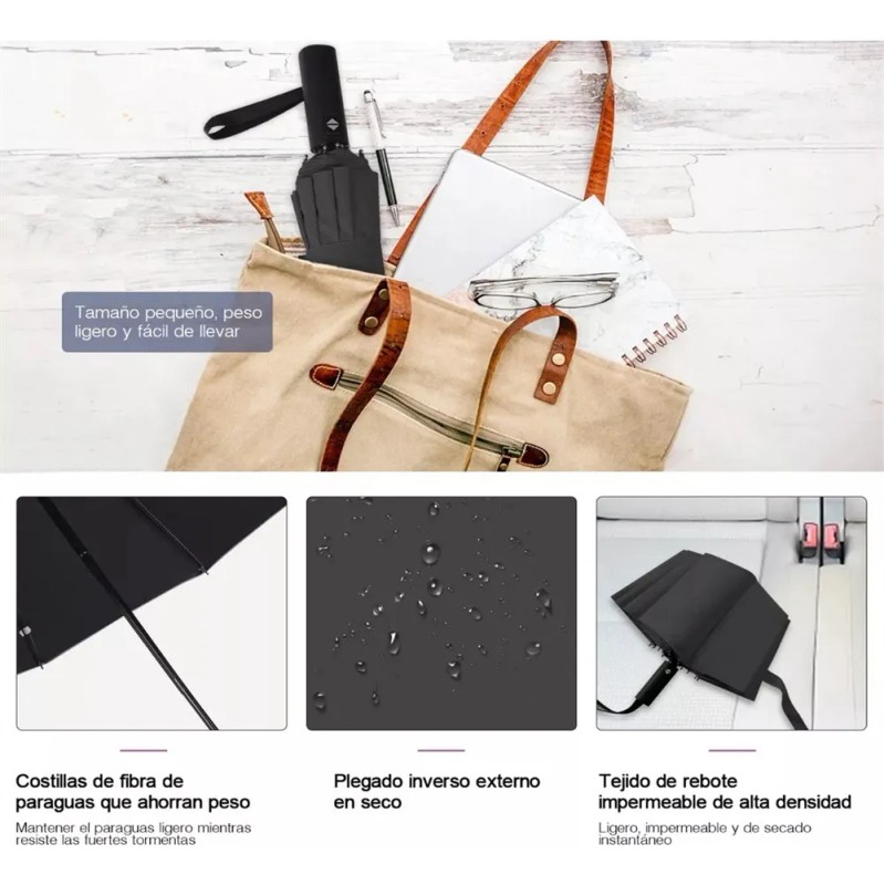 Viess paraguas sombrilla de bolsillo automático reversible color negro
