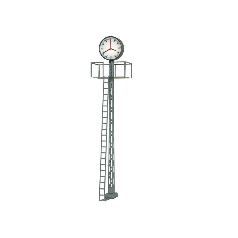 - H0 Beleuchtete Bahnhofsuhr auf Gittermast,LED weiß, Höhe: 11