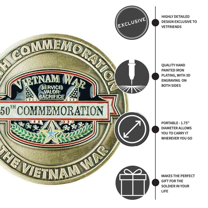 Vietnam War 50th Commemoration Challenge Coin Military for Veterans Families and Retired VetFriends.com