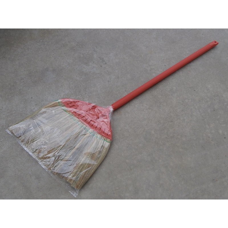 Vietnamese Soft Fan Straw Broom with Red Plastic Tube Handle (chổi lúa) 41 inch