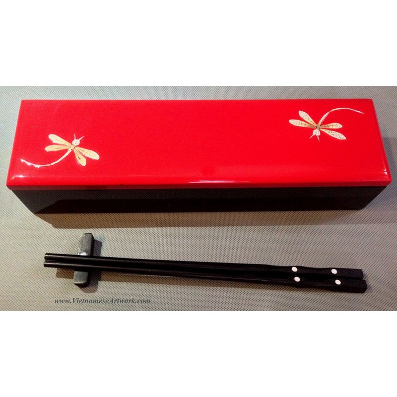 VietnameseArtwork.com Red Lacquer Dragon Fly Chopsticks Box - 10.5" x 3" x 2" - CBI1