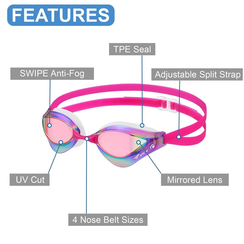 VIEW Swimming Gear V-230ASA Blade Orca SWIPE Racing Swim Goggles, Clear/Dark Pink Mirrored Lens