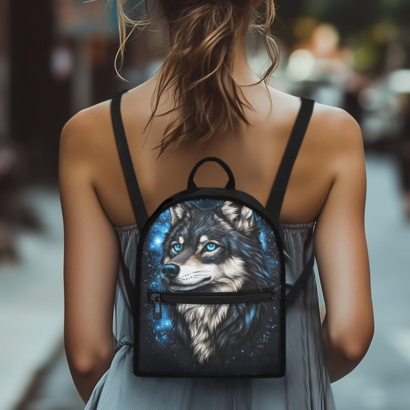 Viewamoon Mini Backpack for Women Wolf Small Cute Backpack Organizer with Adjustable Shoulder Strap for Ladies Small Purse Fashion Handbag for Birthday Picnic Travel Sport Gym