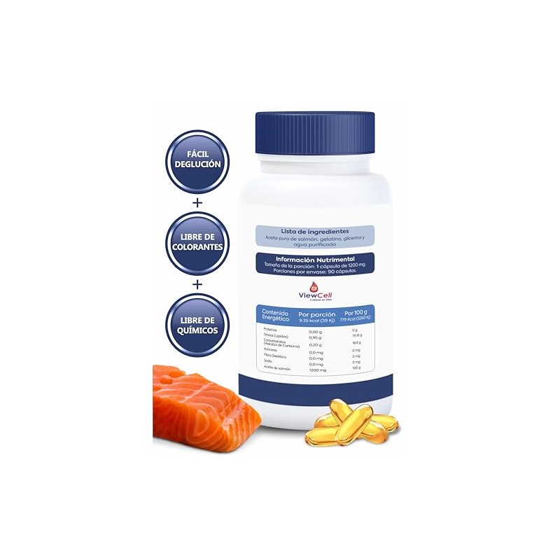 viewcell - ViewCell Cápsulas Omega 3 de Salmón de 1200 mg. Suplemento Alimenticio de Ingredientes Naturales: 90 Cápsulas de Alta Concentración de Aceite puro de Salmón Salvaje Omega 3 Salmon Oil B. ⭐ Calidad premium certificada con excelentes reseñas. Materiales de alta gama y acabados premium. 📦 Entrega rápida y segura. Ideal para quienes buscan lo mejor en calidad y estilo. Producto auténtico con satisfacción total asegurada. ¡No te quedes sin el tuyo y aprovecha esta oportunidad única!