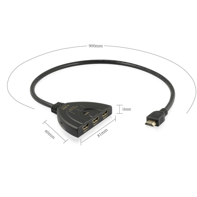 ViewHD Three Port HDMI Switcher 3x1 Switch 4K@60Hz HDMI 2.0 HDCP 2.2 HDR 3FT Pigtail