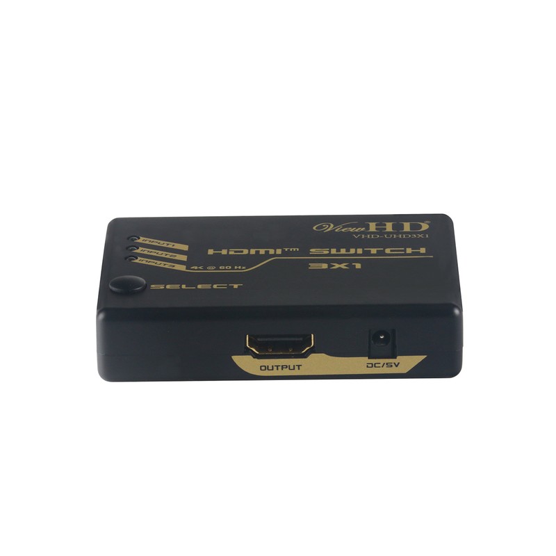 ViewHD UHD HDMI v2.0 3x1 (Three Input to One Output) Powered Switch with Remote Control Support 4K@60Hz | HDR & HDCP 2.2 | VHD-UHD3X1