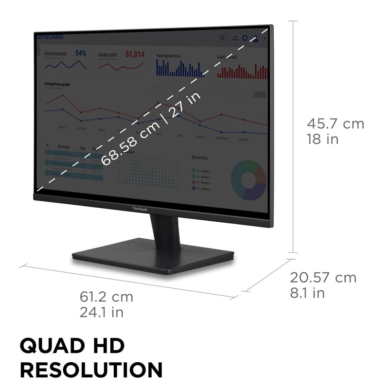 ViewSonic VS2725-2K 27 Inch QHD 1440p Monitor with 100Hz, HDMI, DisplayPort, and Variable Refresh Rate for Home and Office
