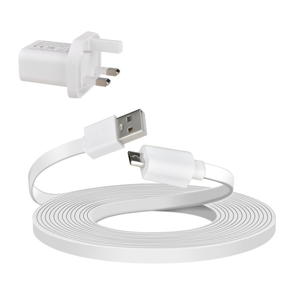 VIEWZONE Charge Cable Compatible with Ring Indoor Cam(2nd Gen), 6m Power Cable with Wall Plug to Power Security Camera Continuously, White