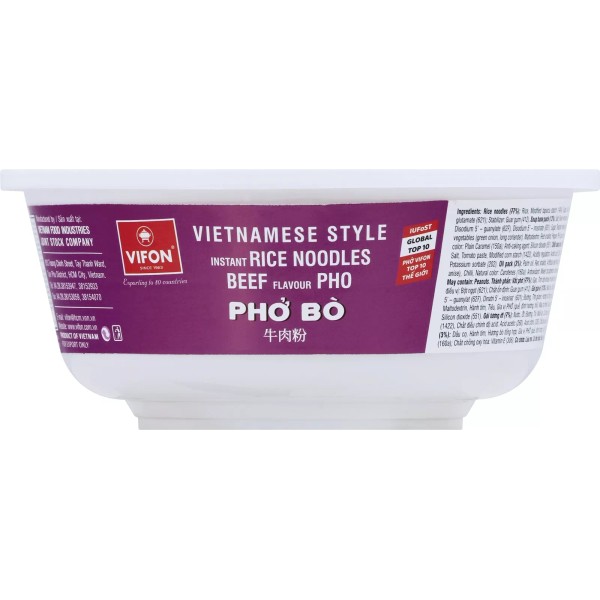 Enjoy the authentic flavors of Vietnam with Vifon Pho Rice Noodle Soup Bowl Beef Flavor. Each pack contains 12 bowls, each filled with 2.4 ounces of savory beef-flavored rice noodle soup. Made with quality ingredients and traditional spices, this convenient bowl offers a delicious and satisfying meal that's ready in minutes.