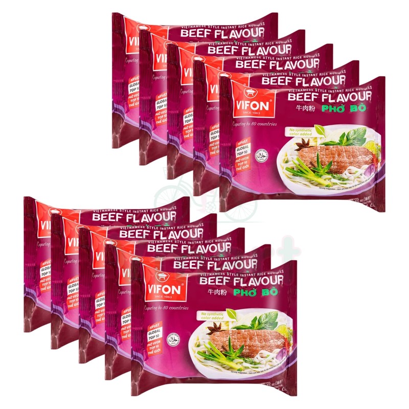 Vifon Vietnamese Style Instant Rice Noodles Beef Flavour Pho Bo 60g (Pack of 10)