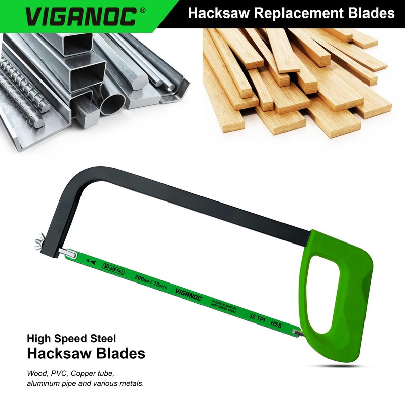 Viganoc 12" Hacksaw Replacement Blades, Bi-Metal High Speed Steel Hack Saw Blades - 32TPI HSS Saw Blades, 2 Pack
