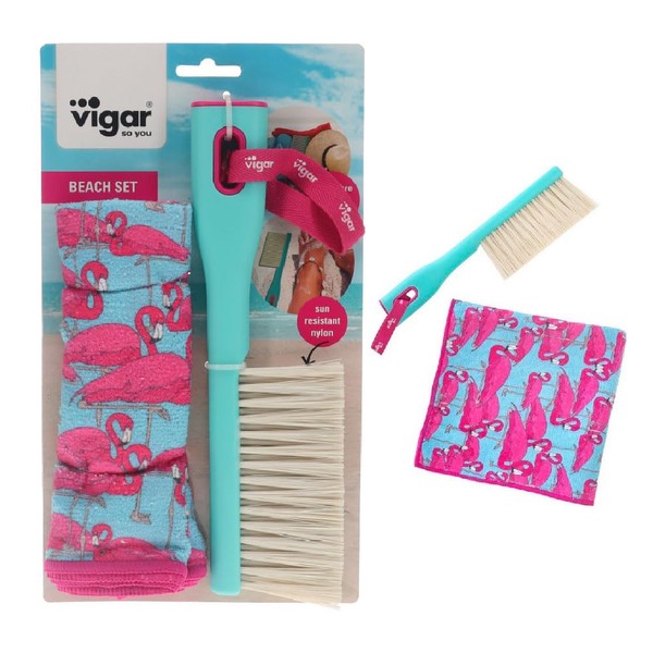 Vigar Beach Sand Remover Brush and Cloth Set, 29 cm Size, Assorted