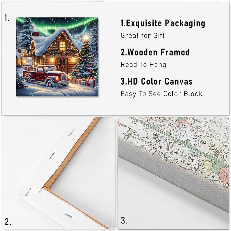 VIGEGU Christmas Paint by Numbers Kit for Adults with Framed,Winter Truck Christmas Tree House Aurora Landscape Paint by Number DIY Adult Paint by Number Kits for Wall Decor 12x12in