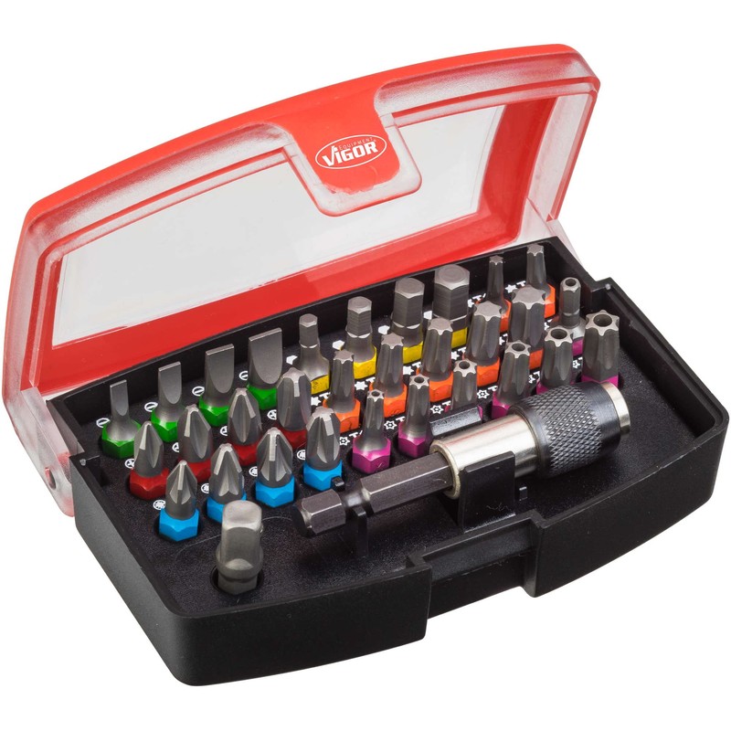 - Contains the most common profiles for various uses: PZ, PH, slotted, hexagon socket, Torx and Torx with face hole