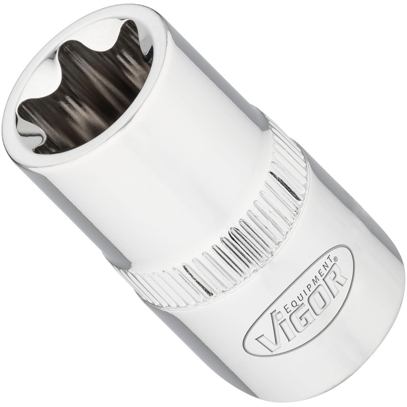 ViGOR V2196N Socket Spanner Insert T 1/2 E18, 1/2 Inch (12.5 mm) Square, E Profile, Length 38 mm, High-Quality Drive for Precise Work