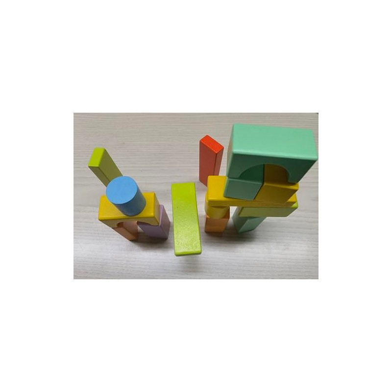 VigorFun Wooden Building Blocks Set - Stacking Blocks with 10 Shapes and 8 Co...