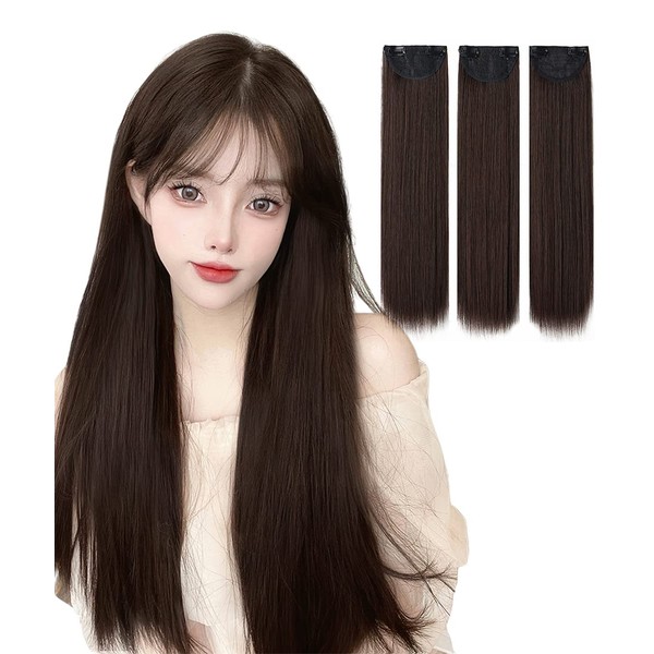 Vigorous Wig, Collarless Wig, Long Straight Extension, Extension, Heat Resistant, One Touch 23.6 inches (60 cm), Includes 3pic/set Clip