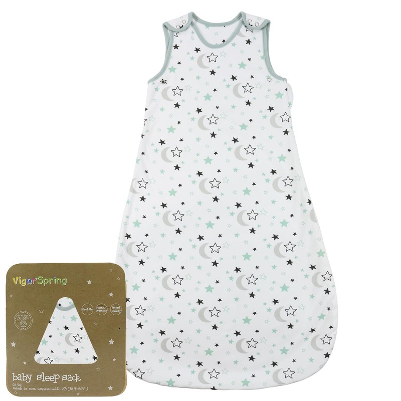 VigorSpring 1.0 tog Sleep Sack 3-20 Months,100% Pure Cotton Wearable Blanket,Baby Sleeping Bag,Unisex Star & Moon
