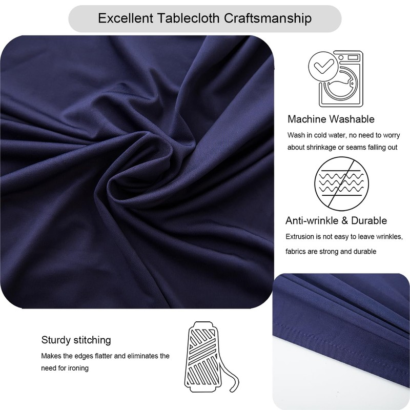 - EASY TO USE & CLEAN: The high-quality spandex fabric is resistant to stains and wrinkles, making it effortless to clean and maintain. Additionally, the fabric is designed to be easy to put on a tabletop, saving you time and effort during setup. With our tablecloth, you can enjoy a hassle-free and convenient solution for your table decor needs