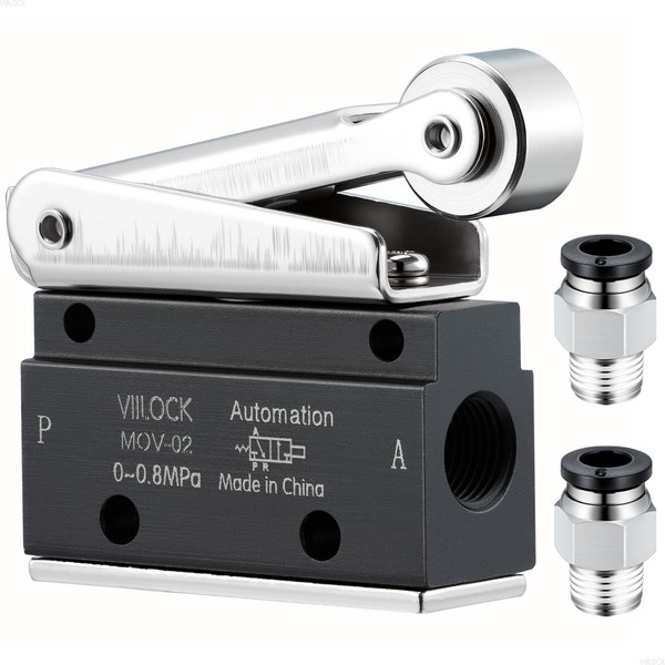 VIILOCK Pneumatic Mechanical Valve, 2 Position 2 Way 1/8”PT Roller Lever Type Normally Closed Air Valve MOV-02