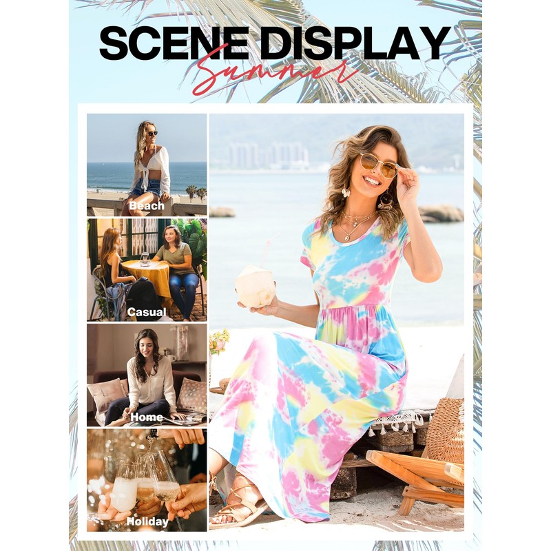 - Features: Round neck,short sleeves,two side pockets,floor length,elastic at waist,not lined,maxi dresses,casual basic style.