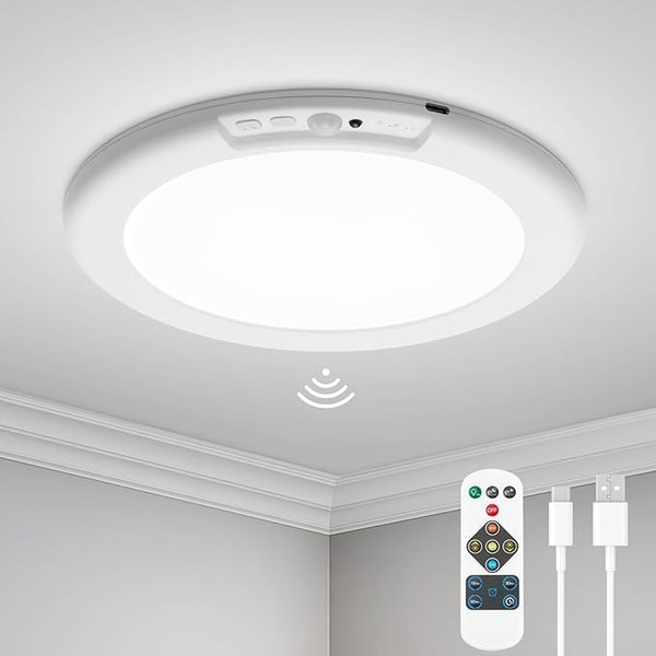 VIIVUU Battery Operated Ceiling Light LED Motion Sensor Rechargeable Ceiling Lamp Ultra-Thin with Remote Wireless for Home