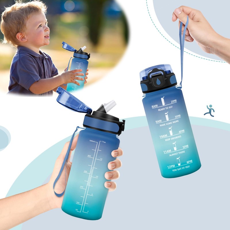 Vikaster Sports Water Bottle, Water Bottle with Straw 0.5 L, Leak-Proof, BPA-Free, Sports Bottle for Camping, Yoga, Gym, School, Outdoors