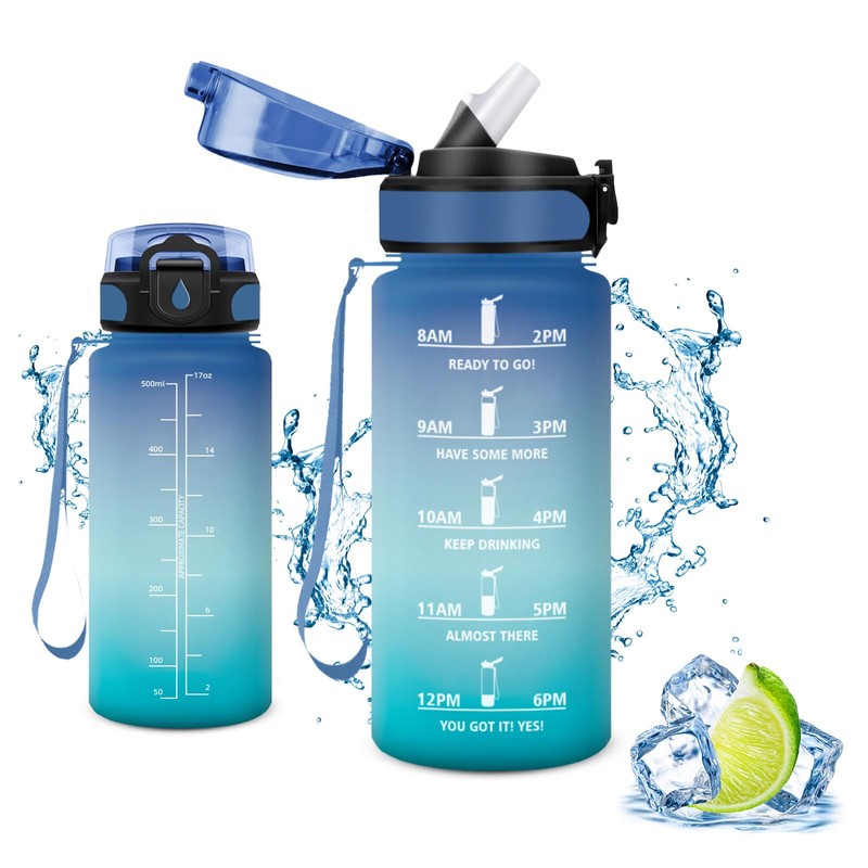 - Three sizes available: it is suitable for adults to drink 1000 millilitres to 2000 millilitres of water per day. Our drinking water bottles have a 500/1000/1500 milliliter capacity and combine functionality and mobility perfectly. So that you can keep an eye on water absorption and drink enough water all day long. In addition to practical carrying straps, makes your life more comfortable