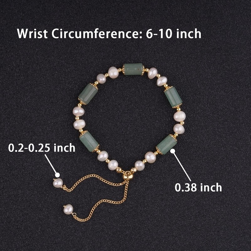 - SPECIFICATION: The wrist circumference of the crystal bracelet is 6-10 inches (14-24 cm). Since the green jade bracelet is made of natural crystal, pearls, and 14K gold plated chain, different crystal bracelets may have slightly different colors and shapes