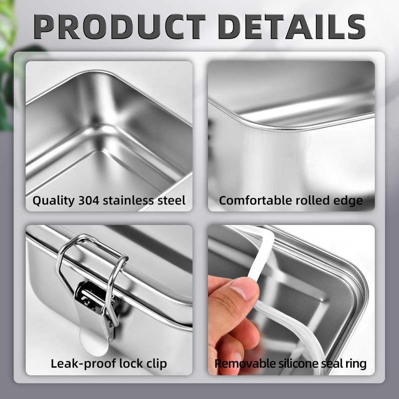- 🍱 QUALITY STAINLESS STEEL MATERIAL: Made from stainless steel, this metal bento box is built to last. It's strong and durable, so even with regular use, it won't let you down. You don't have to worry about dents or warping, making it a safe and reliable option for storing your food. Just a heads up though—this metal bento box isn't microwave-safe.