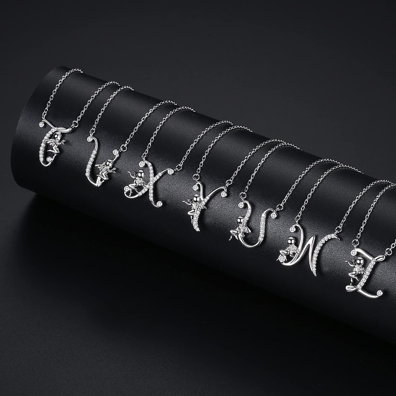 - This beautiful initial pendant necklace designed with a lovely angel on the pendant will compliment all who wears, ensuring a fun and elegant look. This is the perfect presentation, and the perfect gift for that "Someone special" in your life.