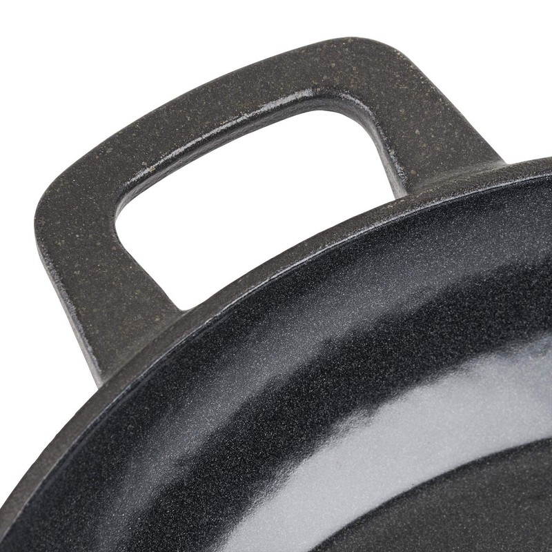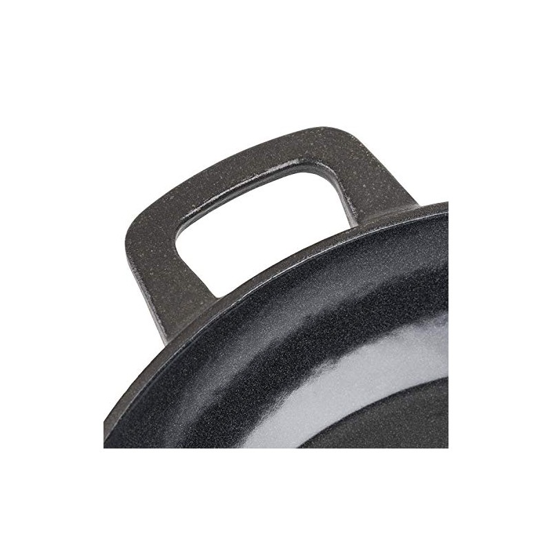- Non-reactive glossy charcoal enamel interior is naturally stick-resistant and metal utensil safe; durable charcoal matte enamel exterior resists chips & cracks and makes clean-up easy