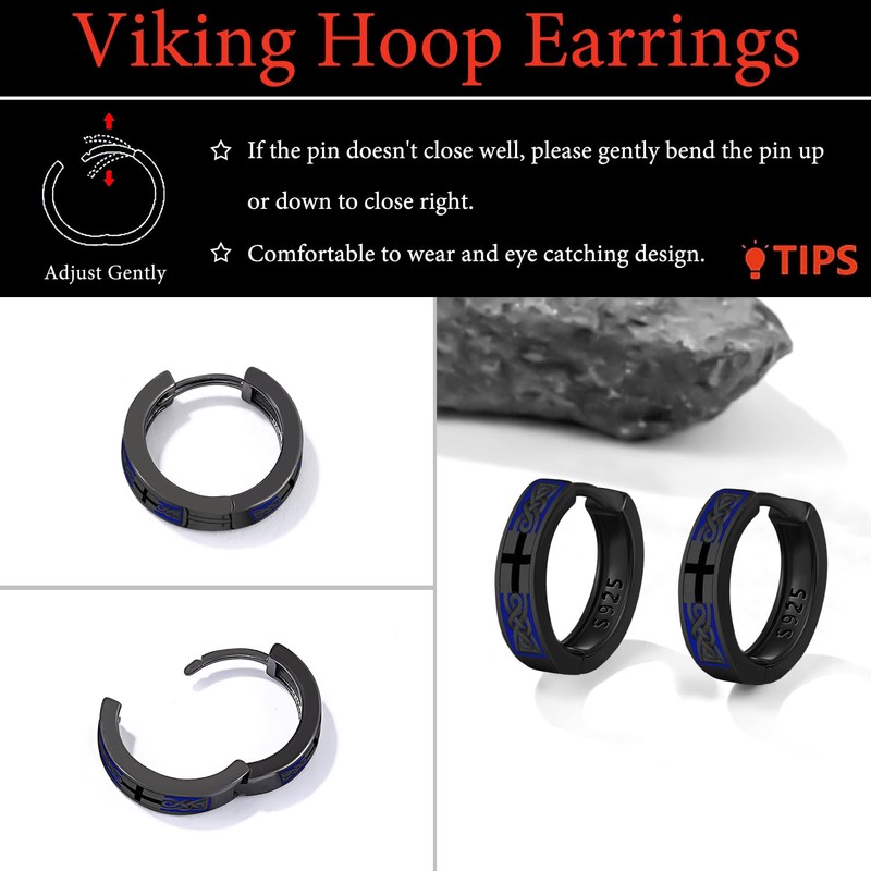 - Huggie earrings for men: Viking hoop earrings made of 925 sterling silver, comfortable to wear, and you can wear them for a long time. Suitable for everyday wear. Huggie Earrings