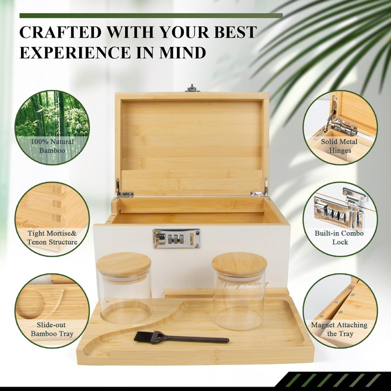 - 「Premium, Naturally Sourced Bamboo」- Crafted from high-quality, naturally sourced bamboo, this box combines durability with elegance. The top-grade construction ensures long-lasting use while adding a touch of sophistication to any space.