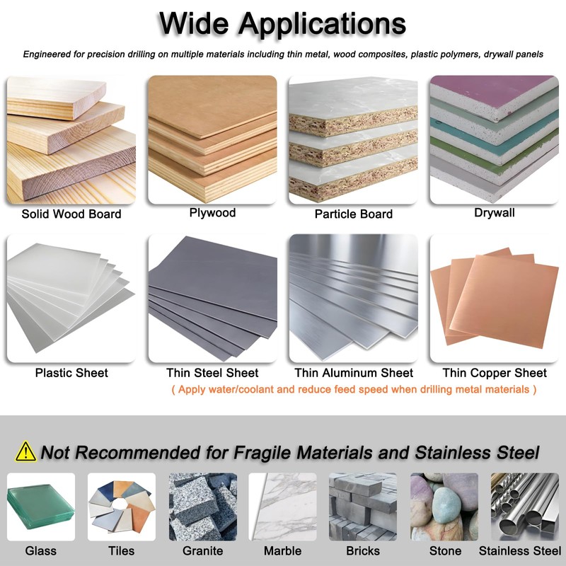 - Wide Applications: Engineered for precision drilling on multiple materials including thin metal (except stainless steel), wood composites, plastic polymers, drywall panels, but not for fragile surfaces including glass, ceramic, tiles, granite, marble, porcelain, bricks, masonry, or natural stone to prevent chipping