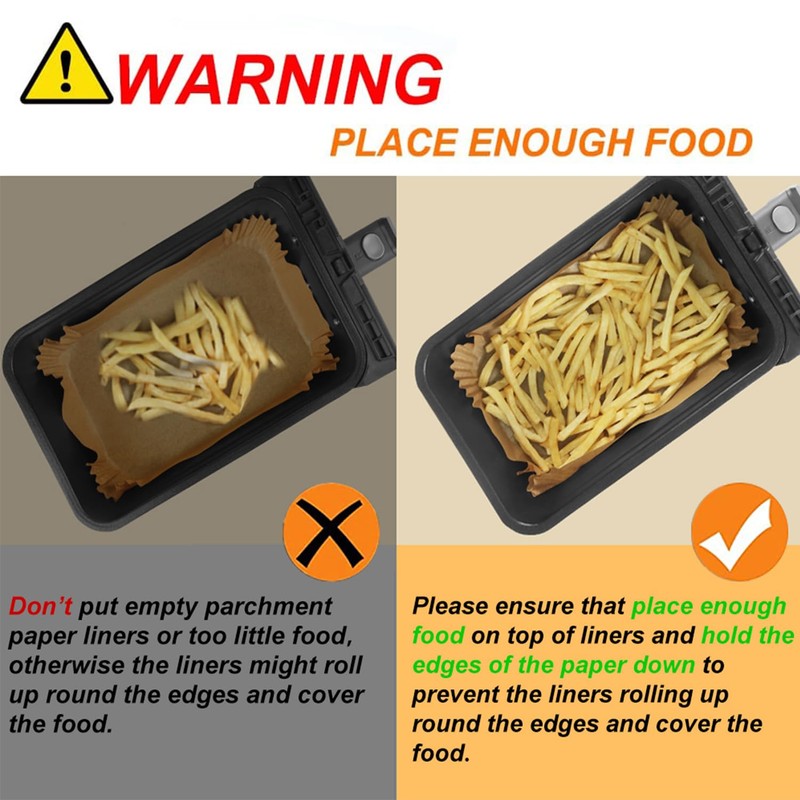 - 🍖【Praktische Größe】: 100 Stück Vorgeschnitten auf exakte Maße des Luftfritteusekorbs, um das Messen oder Zuschneiden zu vermeiden.